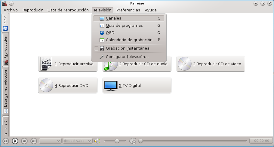 Hecho esto y habiendo guardado los cambios, podemos abrir kaffeine con la opción de siempre y continuar con la configuración desde allí.